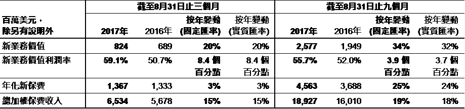 10月20日,友邦保險控股有限公司(港股代號:1299)公布截至2017年8月31日止的第三季度新業(yè)務(wù)價值增長20%。