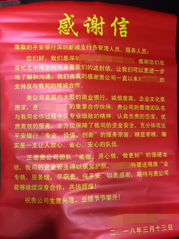 深圳新聞網(wǎng)訊 日前,平安銀行深圳分行分支行聯(lián)動(dòng)想方設(shè)法勸阻客戶,成功堵截了一起詐騙,幫助客戶避免了500多萬元的資金損失,并協(xié)助警方抓獲了詐騙犯罪嫌疑人。此次成功堵截詐騙,得到了客戶和家屬的高度贊揚(yáng),專程送來了錦旗和感謝信,稱贊平安銀行“業(yè)專精、服務(wù)細(xì)、 盡職責(zé)、保平安”。