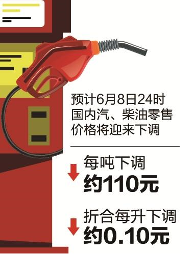 國際油價5月一度攀升至3年多來的階段高位,此后受歐佩克等產(chǎn)油國有意增產(chǎn)及美國原油產(chǎn)量頻創(chuàng)紀錄高位的影響,國際油價震蕩下行。根據(jù)目前一攬子原油價格變化率水平測算,預計6月8日24時國內(nèi)汽、柴油零售價格將迎來下調(diào),每噸下調(diào)約110元,折合每升下調(diào)約0.10元。