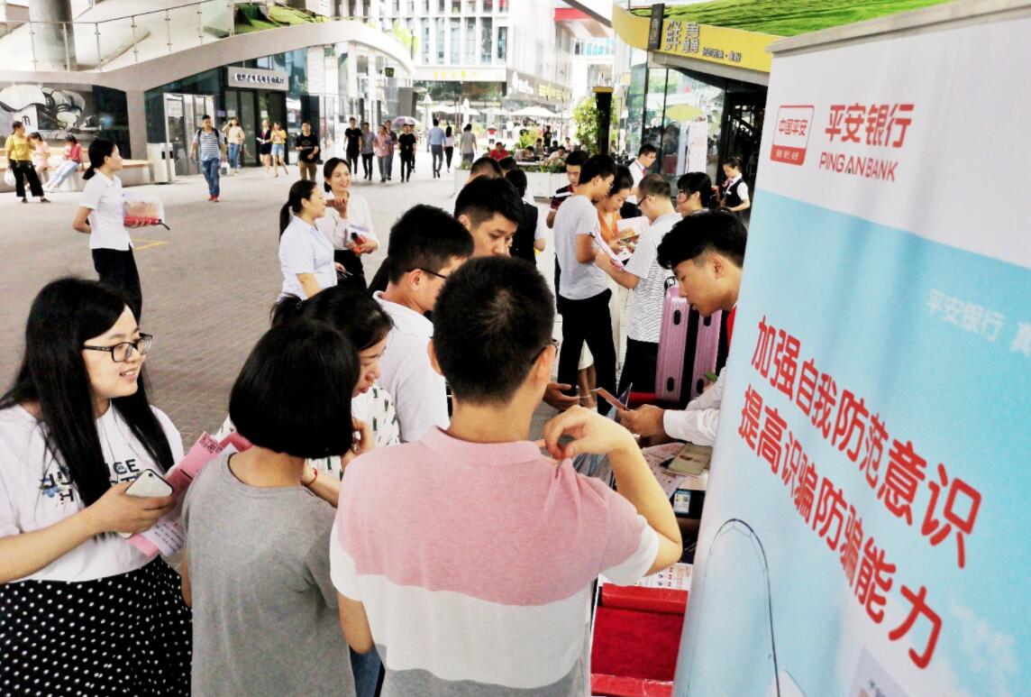 活動中,平安銀行深圳分行的工作人員通過向消費(fèi)者派發(fā)宣傳折頁,講解安全用卡、防范金融詐騙和非法集資等金融安全知識,幫助社會民眾增強(qiáng)辨假防騙能力、提升風(fēng)險意識。活動期間,共向客戶發(fā)放“金融風(fēng)險溫馨提示”、“金融防身術(shù)”、“慧眼識廣告”等宣傳資料共計500余份。