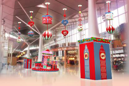 據(jù)介紹,圣誕節(jié)期間東薈城名倉(cāng)店將以英國(guó)國(guó)旗上的紅藍(lán)白為主調(diào),在場(chǎng)內(nèi)掛滿十多組吊飾,各處均充滿英倫氣息。而2樓天橋位置,更將化身為倫敦街頭,有大本鐘報(bào)上八個(gè)城市的時(shí)間;傾斜的電話亭玩味十足,滿布流行藝術(shù)圖案,而顯示屏也會(huì)不斷送上圣誕祝福;還有換上圣誕新裝的英國(guó)士兵,整裝與大家互動(dòng)過圣誕。