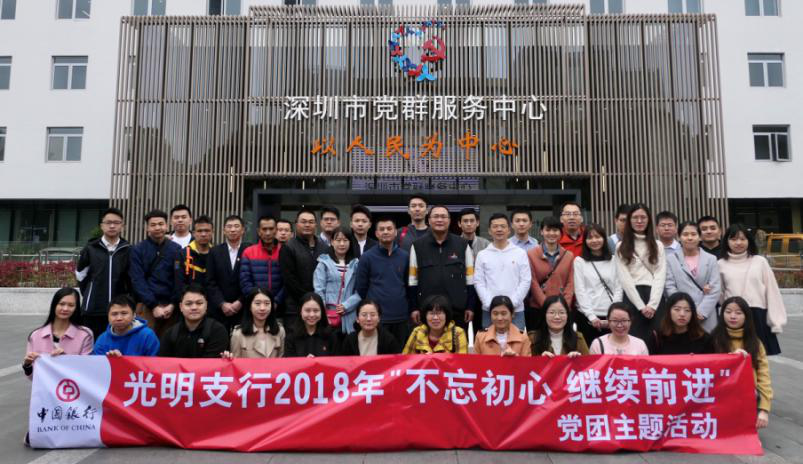 為進(jìn)一步豐富黨團(tuán)組織文化,增強(qiáng)黨員、團(tuán)員干事拼搏、創(chuàng)先爭優(yōu)的意識,提升團(tuán)隊(duì)凝聚力和向心力,12月8日,中國銀行深圳光明支行前往深圳市黨群服務(wù)中心開展“不忘初心繼續(xù)前進(jìn)”黨團(tuán)主題活動,該行轄內(nèi)中共黨員、預(yù)備黨員、發(fā)展對象、積極分子及共青團(tuán)員共計50余人參加。