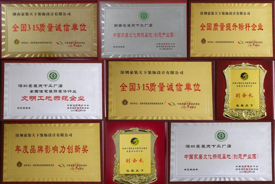 豪裝天下裝飾集團(tuán)所獲榮譽(yù)資質(zhì)