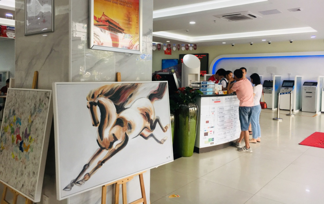 走進交通銀行深圳布吉支行,您的目光一定首先會被陳列廳堂的油畫作品吸引。這些油畫是布吉支行用于精準(zhǔn)扶貧的義賣作品,用來幫助河源市紫金縣禮坑村許大爺家庭。支行精準(zhǔn)扶貧工作已經(jīng)進入第三個年頭,2019年6月,支行利用啟動基金向畫商重新購置了油畫作品。新添置的油畫作品擺放于支行大廳,結(jié)合總行廳堂一體化改造,支行廳堂呈現(xiàn)出全新面貌。
