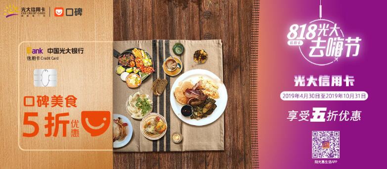 活動(dòng)期間每周一至每周日,光大信用卡用戶且在支付寶實(shí)名認(rèn)證個(gè)人用戶,在口碑平臺(tái)美食行業(yè)商戶處(休閑食品的商戶除外),使用支付寶賬戶綁定的光大銀行信用卡快捷支付進(jìn)行當(dāng)面付消費(fèi),有機(jī)會(huì)享受5折優(yōu)惠,最高15元優(yōu)惠封頂?;顒?dòng)期間每天限前8000個(gè)優(yōu)惠名額,名額有限,用完即止?;顒?dòng)期間同一用戶每月限享1次優(yōu)惠機(jī)會(huì)。(詳見(jiàn)陽(yáng)光惠生活A(yù)PP或口碑APP銀行卡特惠頻道,具體路徑見(jiàn)活動(dòng)細(xì)則)。