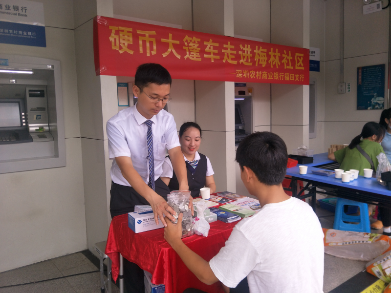 深圳新聞網(wǎng)訊 為深入貫徹黨的十九大精神,積極落實(shí)普惠金融政策,優(yōu)化現(xiàn)金流通環(huán)境,提升現(xiàn)金服務(wù)水平,深圳農(nóng)村商業(yè)銀行梅林支行積極落實(shí)現(xiàn)金服務(wù)示范區(qū)工作,并于8月3日攜手威豹押運(yùn)公司走進(jìn)梅林社區(qū),舉辦了硬幣兌換大篷車活動。