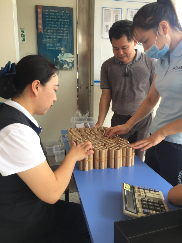 活動當(dāng)天大雨滂沱,但社區(qū)居民兌換熱情依舊不減,經(jīng)過10個小時的清點(diǎn)工作,本次共回籠硬幣121802枚,其中1角66200枚,5角7084枚,1元48518枚,合計(jì)人民幣58680元。在兌換硬幣的同時,深圳農(nóng)村商業(yè)銀行工作人員向周邊居民普及現(xiàn)金基礎(chǔ)知識和防范風(fēng)險的技能。