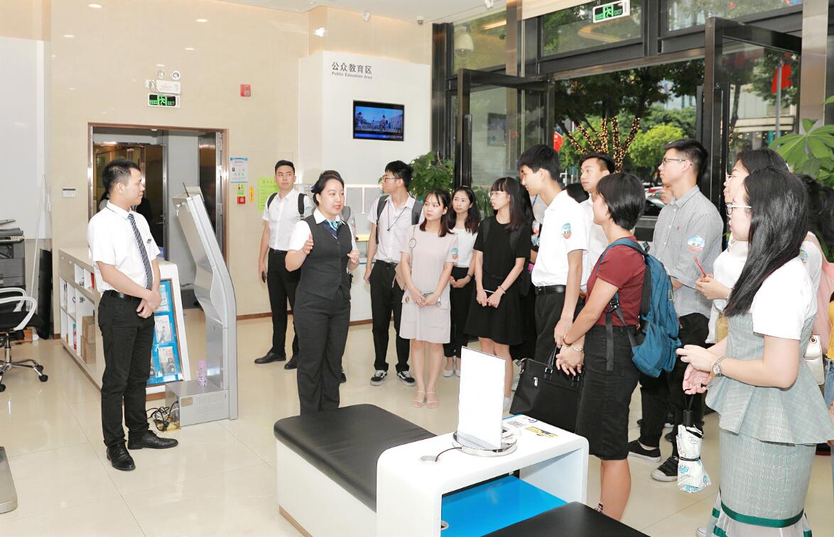 開放日活動的第二站,同學們來到沙井支行營業(yè)部、沙井坣崗支行和福田支行營業(yè)部學習了銀行營業(yè)網(wǎng)點功能區(qū)布局、窗口設置、營業(yè)場所裝飾、智能設備配置及人員安排等情況,對銀行營業(yè)網(wǎng)點的工作環(huán)境有了更直觀的感受和體驗。特別是在參觀沙井東塘支行的員工宿舍“職工之家”時,同學們對這個占地1500平米、總建筑面積3200平米的獨立大院由衷贊嘆,向往不已。