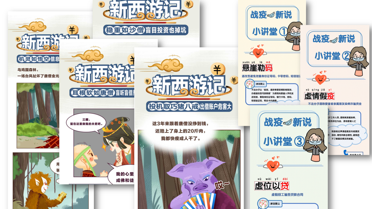 針對疫情期間頻繁出現(xiàn)電信網(wǎng)絡(luò)詐騙的情況,招商銀行深圳分行迅速反應(yīng),以原創(chuàng)漫畫、小視頻、線上直播及在線互動問答等新穎形式開展抗疫防騙線上宣教,對不同類型的詐騙套路進行揭示和解析,如虛假售賣醫(yī)用口罩、以慈善募捐名義騙取捐款等,及時對消費者進行風(fēng)險提示。除此之外,還以普及金融消費者享有的八項法定權(quán)利、倡導(dǎo)金融消費者依法理性維權(quán)、宣傳個人征信業(yè)務(wù)網(wǎng)上辦理、識別非法金融廣告等知識為內(nèi)容,創(chuàng)作貼合時事、實用有趣、形式多樣的宣教作品,有效提升了消費者在疫情特殊時期的金融素養(yǎng)。