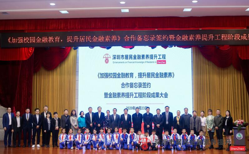 深圳新聞網(wǎng)·見圳客戶端2020年12月29日訊 近日,由中國人民銀行深圳市中心支行、深圳銀保監(jiān)局、深圳證監(jiān)局、深圳市地方金融監(jiān)督管理局、深圳證券交易所、深圳市教育局、福田區(qū)人民政府主辦,深圳市民政局協(xié)辦的《加強(qiáng)校園金融教育,提升居民金融素養(yǎng)》合作備忘錄簽約暨金融素養(yǎng)提升工程階段成果大會(huì)在福田實(shí)驗(yàn)僑香學(xué)校舉行。深圳市政府、相關(guān)機(jī)構(gòu)領(lǐng)導(dǎo),市各金融機(jī)構(gòu)代表、市區(qū)中小學(xué)校領(lǐng)導(dǎo)、街道社區(qū)負(fù)責(zé)人以及僑香學(xué)校的師生們等逾200人出席了大會(huì)。