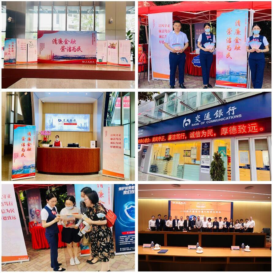 打造精品宣教,利用現(xiàn)有陣地營造氛圍。在交行大廈各個(gè)樓層及交行六十余家營業(yè)網(wǎng)點(diǎn)大廳利用各類展板、海報(bào)、折頁、易拉寶、海報(bào)機(jī)、電視屏、跑馬燈等宣傳金融廉潔文化知識(shí);在深圳地區(qū)交行ATM機(jī)主頁以及“交通銀行深圳分行”微信公眾號(hào)上發(fā)布清廉金融文化核心理念內(nèi)容。通過強(qiáng)力宣教,營造了濃厚的氛圍,清廉金融文化的影響力不斷擴(kuò)大,清正、清廉、清朗、清明的行業(yè)風(fēng)氣進(jìn)一步形成。