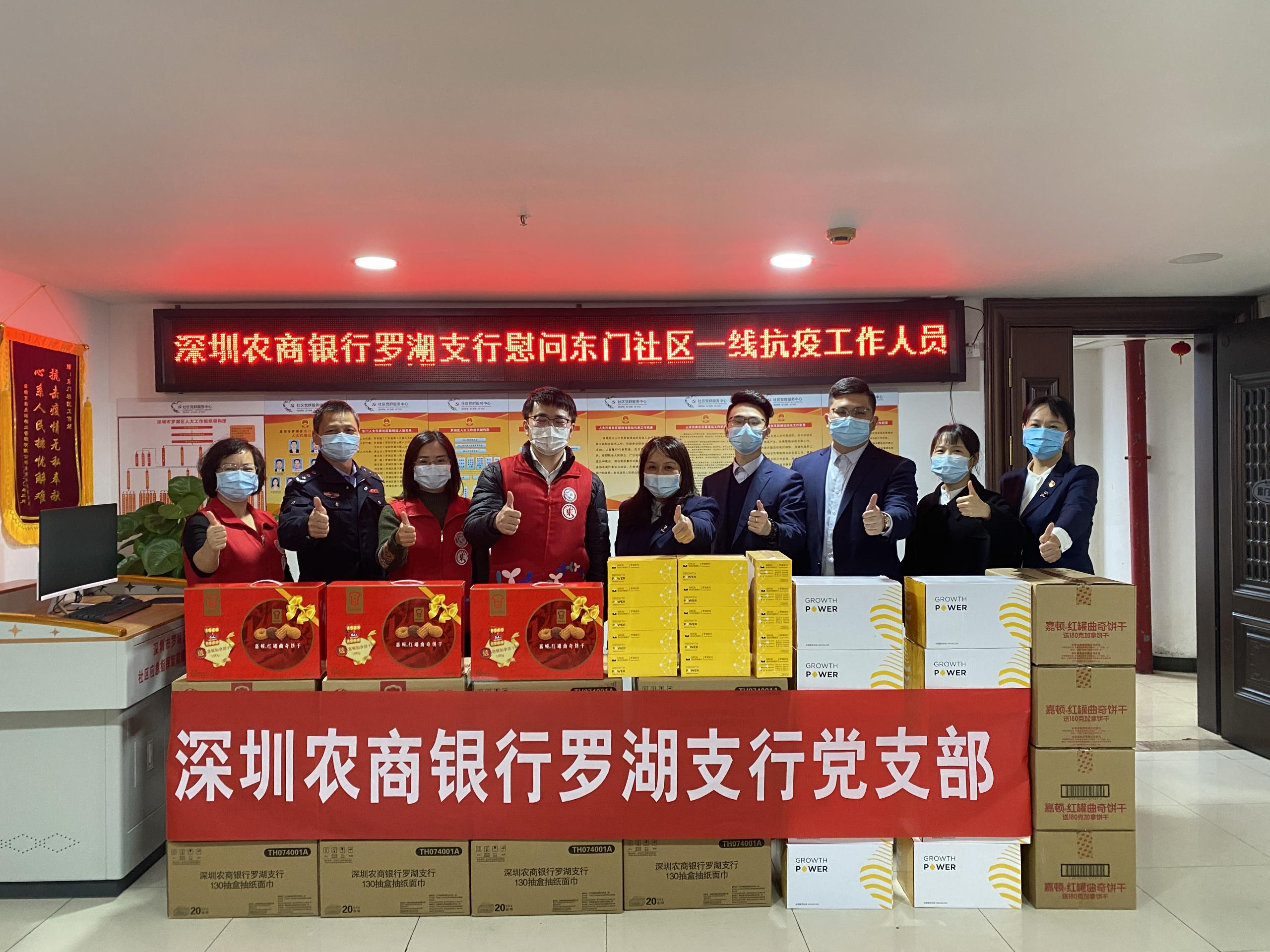 雖不能上前線抗疫,但作為羅湖區(qū)的本地金融企業(yè),在看到抗疫人員的辛苦付出后,深圳農商銀行羅湖支行主動發(fā)起“情暖疫線,羅湖加油”活動,轄下各網點員工在做好疫情防控前提下,為一線抗疫人員送上曲奇餅、紙巾、礦泉水等溫暖物資,慰問抗疫人員,積極履行作為金融企業(yè)的社會責任。截至目前,活動共覆蓋羅湖草埔東、蓮塘、黃貝嶺等八個社區(qū),并在繼續(xù)開展中。