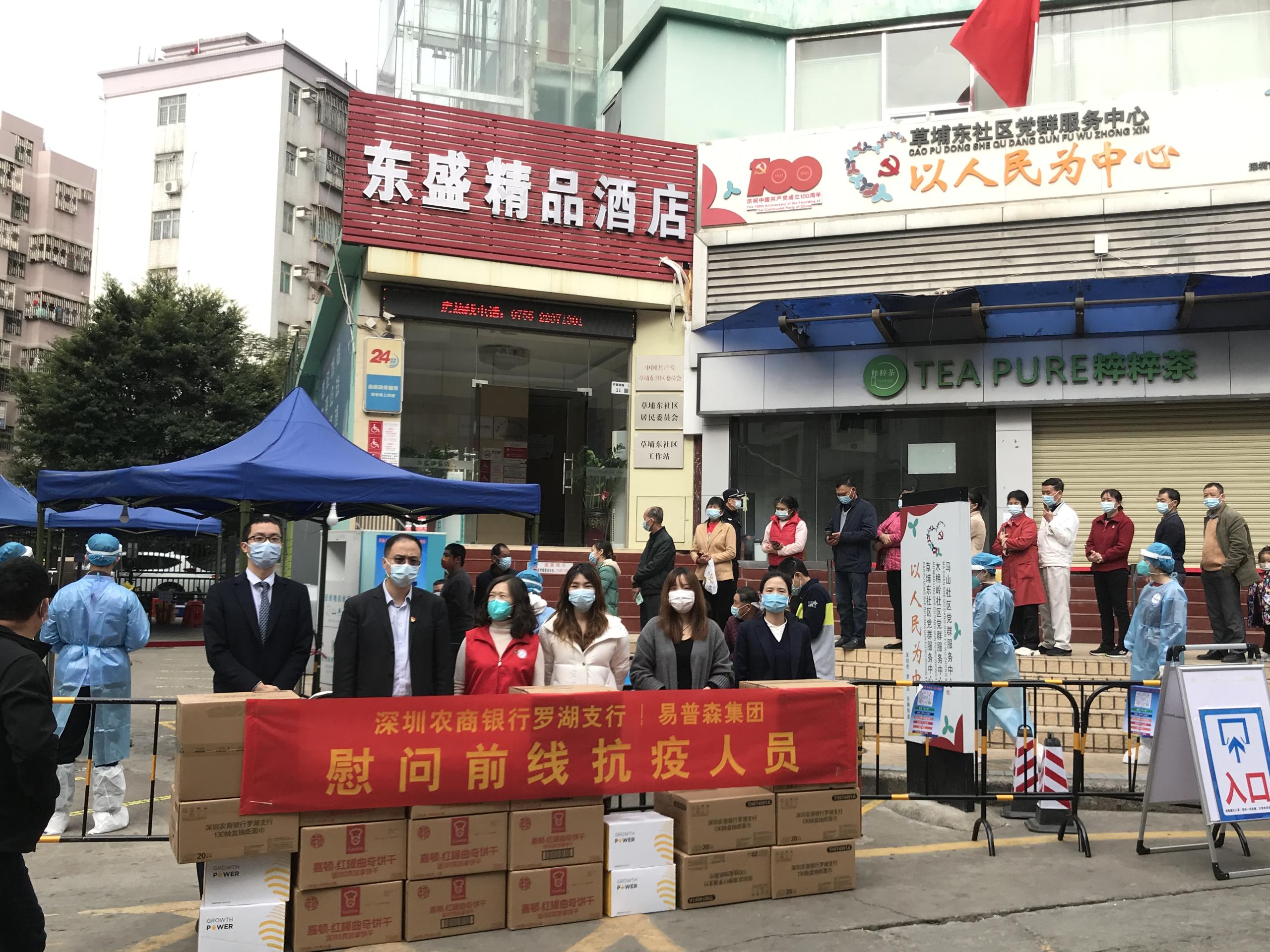 草埔東社區(qū)工作站張廣華書張書記表示:非常感謝前來慰問的單位和企業(yè),心暖暖的,知道有很多人在關心他們,累點苦點沒什么。這也是深圳農商銀行羅湖支行發(fā)起本次活動的初衷,希望物資不僅帶給抗疫人員體能上的補充,同時也讓他們感受到他們不是一個人在戰(zhàn)斗,大家一起協(xié)力,共同打贏深圳這場疫情防控阻擊戰(zhàn)。