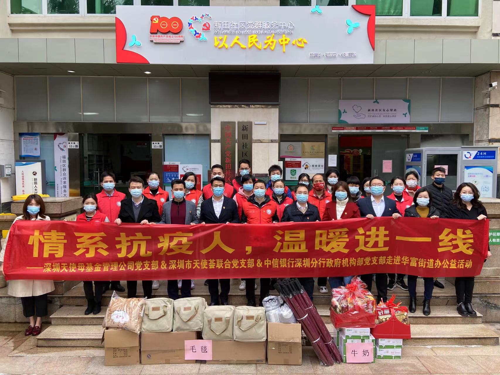 據(jù)了解,近日中信銀行深圳分行政府機(jī)構(gòu)部黨支部與深圳市天使母基金管理公司黨支部、深圳天使薈聯(lián)合黨支部到福田華富街道新田社區(qū)開展了“情系抗疫人,溫暖進(jìn)一線”活動;信息技術(shù)部黨支部赴羅湖南湖街道海燕廣場核酸檢測點(diǎn)、后海支行黨支部赴南山海信廣場核酸檢測點(diǎn)、寶城支行前往寶安海雅繽紛城廣場核酸檢測點(diǎn)進(jìn)行慰問,用實(shí)際行動支援抗疫工作。慰問了一線抗疫工作人員,同時(shí)為社區(qū)提供了充電寶、毛毯、雨傘、食品、飲品等防疫物資。寒冷中,熱騰騰的姜茶不僅讓抗疫工作者舒緩了疲憊,更讓他們頓感心中溫暖。