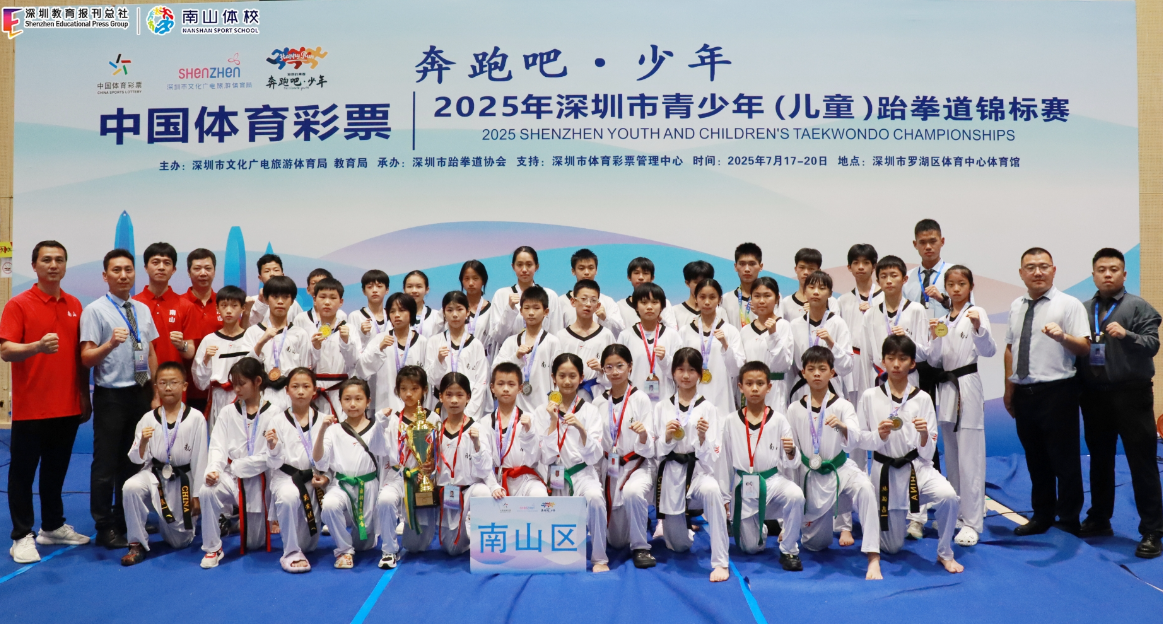 深圳新聞網(wǎng)2025年7月23日訊(記者 湯莎)7月17日至21日,2025年深圳市青少年(兒童)跆拳道錦標(biāo)賽在羅湖區(qū)體育館舉行。南山區(qū)代表隊以強勁實力斬獲13金12銀7銅,團體總分位列深圳市第一,衛(wèi)冕金牌榜、獎牌榜榜首。