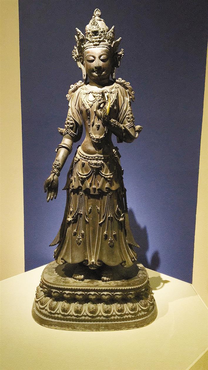 記者看到,如今正在舉行的“觀照自在——中國古代觀音造像藝術(shù)展”展出中國漢藏兩大佛教體系中觀音及其化身、本尊、眷屬等相關(guān)造像共計(jì)百余件,包括銅造像、繪畫、瓷塑以及木雕等多種質(zhì)地,均為首都博物館所藏,藝術(shù)文化價(jià)值極高。由此亦可見首都博物館所藏佛教文物非常豐富。