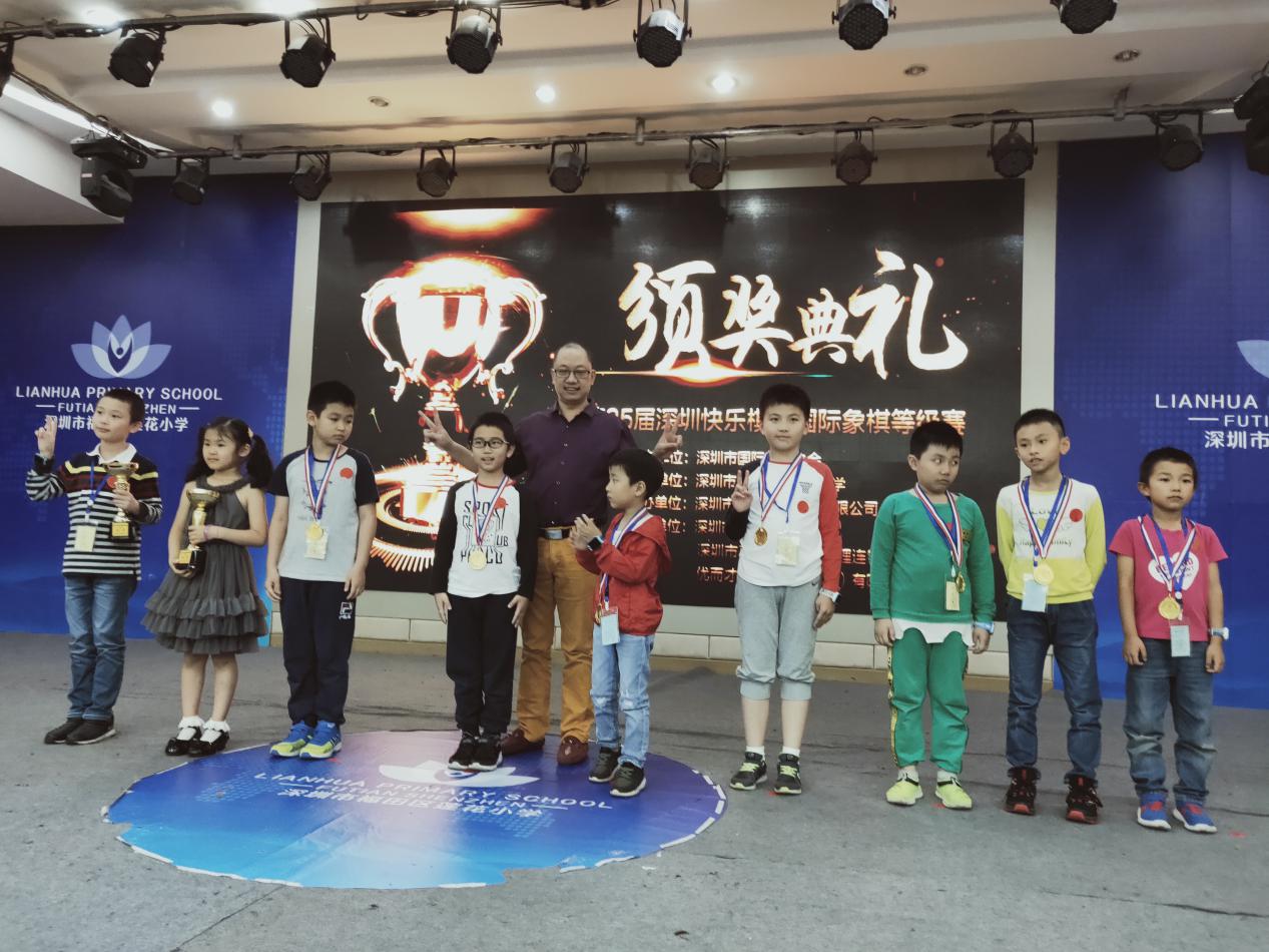 福田區(qū)蓮花小學(xué)校長王華斌先生為獲獎棋手頒獎
