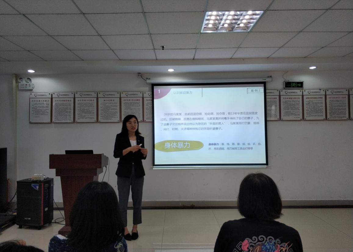活動(dòng)現(xiàn)場,維德法律服務(wù)中心志愿律師劉秀為大家講授以“要愛不要傷害”為主題的反家暴講座。她以當(dāng)下反家暴的熱點(diǎn)與經(jīng)典案例為切入點(diǎn),就如何維護(hù)女性在婚姻家庭中的權(quán)益問題與居民和社工展開深入探討。值得一提的是,劉律師還與社區(qū)工作人員一起,以親身體驗(yàn)的方式,復(fù)刻了現(xiàn)實(shí)生活中的法律咨詢現(xiàn)場。
