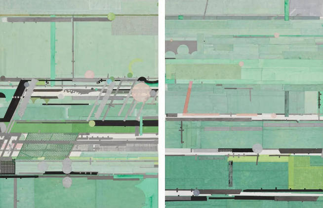 江南絲竹,2017,色、墨、宣紙拼貼,162 x123 cm x2(雙聯(lián))?梁銓.圖片由藝術(shù)家和紅樹(shù)林畫(huà)廊提供