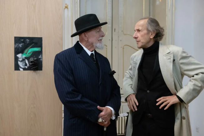 交談中的馬庫(kù)斯·呂佩爾茨和恩佐·庫(kù)奇 ? Enzo Cucchi.圖片由藝術(shù)家和紅樹(shù)林畫(huà)廊提供