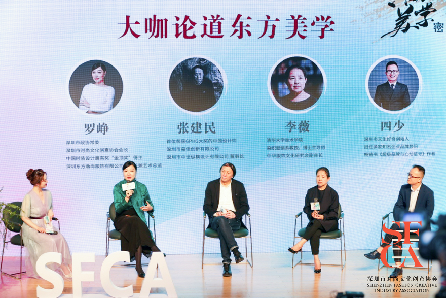 來自深圳市時尚創(chuàng)意、工業(yè)設計、服裝設計、文化傳播、主流媒體等領域的上百位嘉賓與線上觀眾一起見證論壇盛況。中國文聯(lián)副主席,中國民間文藝家協(xié)會主席潘魯生與李槍、張建民、李薇三位主講嘉賓以“東方美學密碼”為主題,分別從 《東方美學密碼的物質化轉換》《東方美學與品牌創(chuàng)新實踐之路》《設計創(chuàng)作中的“道與器”》三個角度,分享了東方美學在當代藝術界、工業(yè)設計、服裝設計等領域以及現(xiàn)實生活中的應用和未來可能性。公眾不僅從名師大家的思想與洞見中感知東方美學綿延不絕的生命力,也找到了東方美學能夠引領世界新時尚的“密碼”所在。