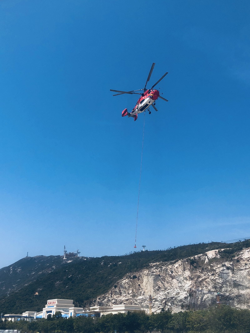 此次KA32直升機吊裝驗證飛行,由海直通航與長隆建設工程有限公司、波馬嘉仕其(北京)索道有限責任公司共同組織開展,三家公司在數(shù)月前就開展驗證飛行進行多次交流探討,對起吊和放貨場地進行多次現(xiàn)場勘查,研究分析技術(shù)難點,制定了詳細的飛行方案和安全預案。