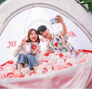 野營(yíng)帳篷內(nèi)鋪滿了海洋球,還有星空燈,讓人感受到浪漫和夢(mèng)幻。逛街累了,來(lái)帳篷小憩,和朋友一起躺在帳篷里,玩玩自拍,感受浪漫、夢(mèng)幻的氛圍。肯德基的這個(gè)都市野營(yíng)體驗(yàn),讓身處鋼筋混凝土城市的人們感受到了別樣的野營(yíng),享受到了不一樣的周末時(shí)光。