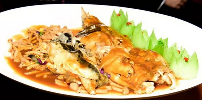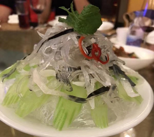 本次品鑒會晚宴以富谷紅鰭東方鲀?yōu)橹黝},共呈現(xiàn)了七道河豚及相關(guān)產(chǎn)品菜品:包括:紅燒河豚、白汁河豚、白溜河豚魚片、紅燒海參靈芝菇、河豚魚皮絲、河豚魚丸湯、河豚魚水餃等,與會嘉賓共同品鑒,對河豚食材鮮美贊不絕口。(常軍平)