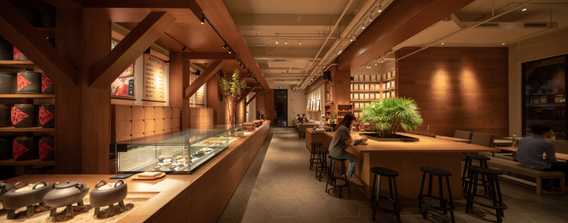 “一個溫暖的會客廳”是tea’stone對所構(gòu)建的茶空間的定義,也是他們對其所提倡的茶美學(xué)生活的表達(dá)之一。tea’stone團(tuán)隊有著深厚的空間美學(xué)造詣,在傳統(tǒng)的基礎(chǔ)上做減法,沉浸式的開放空間,選取東方美學(xué)的核心因素,以傳統(tǒng)梁柱,斗拱和椽檁,勾勒出當(dāng)代簡約的茶空間,呈現(xiàn)出精制溫暖的格調(diào),家私、櫥窗、花藝凡見種種,皆散發(fā)著和諧雅致的美感。簡潔,現(xiàn)代,精致,溫暖,再結(jié)合“一人一席”的飲茶方式,讓喝茶這件事完整靈動,并且稱得上具有美感的生活方式。難怪能看到越來越多的人們抱著筆記本坐在tea’stone里面獨(dú)處、辦公、會友?,F(xiàn)代中國人的“第三空間”從此又有了新的選擇。