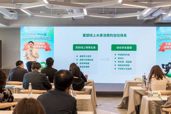 見圳客戶端·深圳新聞網(wǎng)2019年11月30日訊 11月29日,天貓與百果園在深圳阿里中心舉行戰(zhàn)略合作發(fā)布會,天貓大食品總經(jīng)理無齡、大食品果蔬冰運營負責(zé)人思豪,百果園集團副總裁焦岳、電商負責(zé)人孫鵬出席會議并發(fā)表演講。本次發(fā)布會以“共創(chuàng)水果生鮮好生活”為主題,雙方計劃通過優(yōu)勢互補和資源整合,從水果到生鮮進行全面深入的戰(zhàn)略合作。