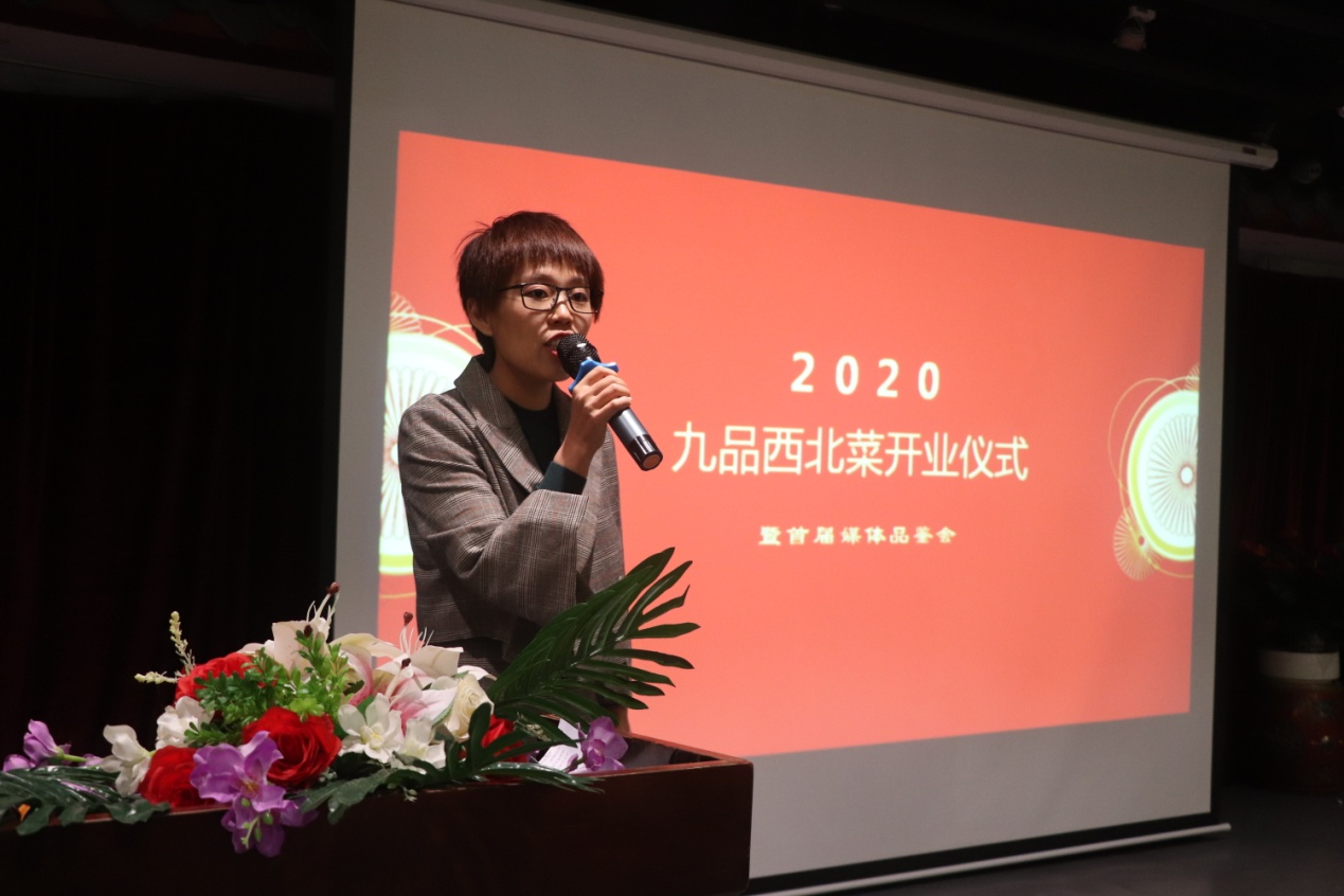 本屆媒體品鑒會由“九品西北菜”創(chuàng)始人兼出品總監(jiān)賈淑萍女士歡迎致辭,并且分享了關(guān)于品牌創(chuàng)始背后的故事?!熬牌肺鞅辈恕笔莾A金河建材集團之力,萃取20多年用心精華,嚴(yán)格把控菜品供應(yīng)鏈,歷史20年,打造出來的新品牌。