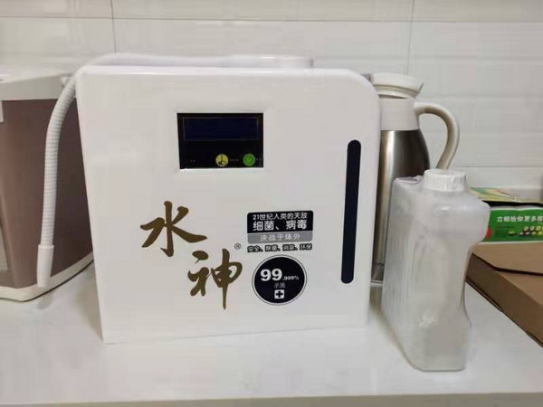 “水神”的身影也在全國各大城市的居民小區(qū)中閃現(xiàn)。旺旺集團旗下上海神旺大酒店每天向田林街道、江蘇路街道、仙霞路街道提供水神消毒液生成機生成的消毒水,供街道殺菌使用。