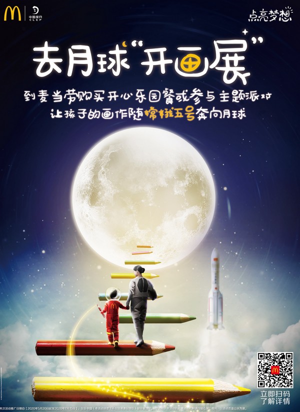 麥當(dāng)勞中國(guó)與“中國(guó)探月”合作,讓兒童夢(mèng)想畫作隨“嫦娥五號(hào)”奔向月球。