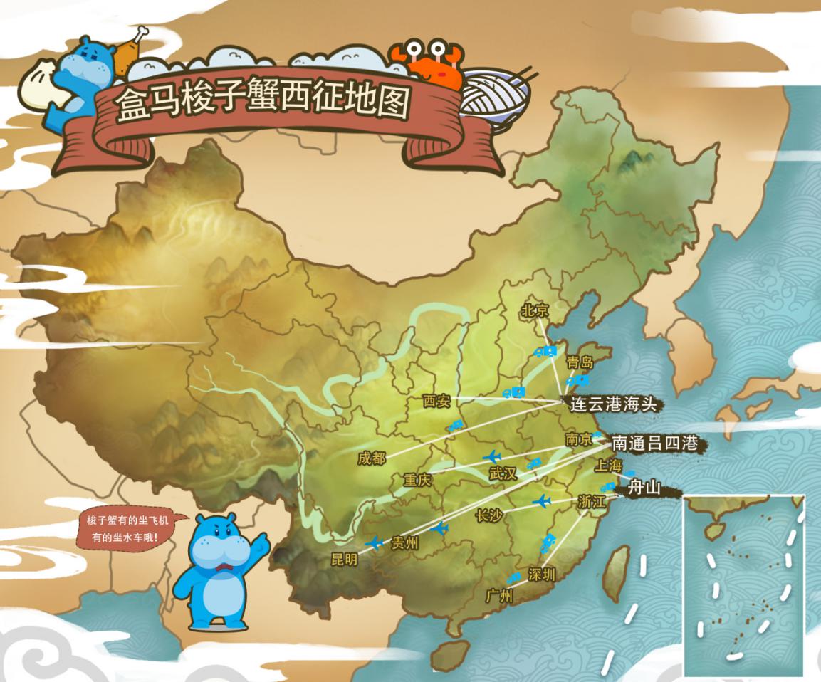 除了浙江舟山,盒馬還在在江蘇呂四、連云港分別設(shè)立了直采基地和純海水恒溫暫養(yǎng)倉(cāng),每個(gè)暫養(yǎng)倉(cāng)可以容納5萬(wàn)斤的梭子蟹和皮皮蝦,可以滿足2 -3天的海鮮供應(yīng)量,并根據(jù)空間距離、物流干線等因素,來(lái)調(diào)撥供應(yīng)近20個(gè)城市的門店,提升海鮮的鮮活度。
