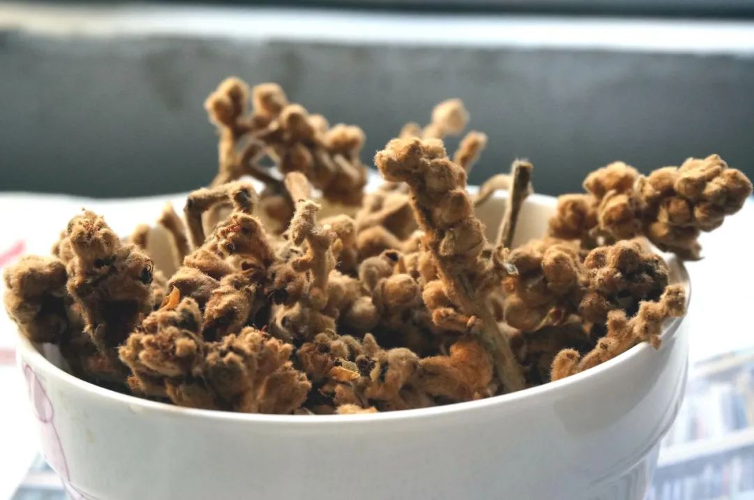 菊花在中醫(yī)常作為清熱解毒,養(yǎng)肝明目之用,民間常用來泡水代茶飲?,F(xiàn)代藥理學(xué)研究發(fā)現(xiàn)它有抗菌抗病毒的作用;具有與西藥他汀類相似的降膽固醇的藥理作用,有抗衰老作用。