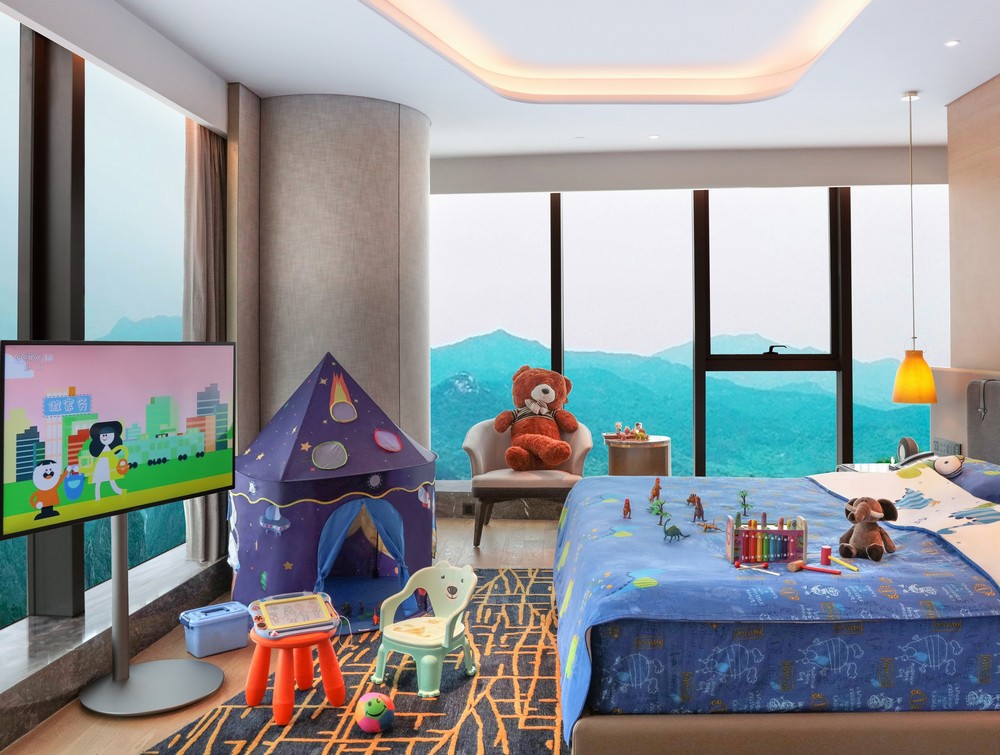 2020年10月1日至10月8日入住深圳博林天瑞喜來登酒店親子客房,即享主題歡迎禮遇和專屬房間布置。酒店為孩子們精心備下了多重驚喜:孔子主題歡迎禮遇彰顯濃厚文化底蘊又不失趣味性;精美小帳篷里藏著一片神秘的“原始森林”,這里有郁郁蔥蔥的“灌木叢”,栩栩如生的“小恐龍”,讓孩子們在房間里就能體驗露營冒險的樂趣;各類親子圖書及玩具將拉近您與您寶貝的距離,讓歡聲笑語充盈整個其樂融融的假期。為呵護寶貝健康,酒店特準備一系列兒童用品,包括浴袍,拖鞋,牙刷牙膏,兒童沐浴用品等。