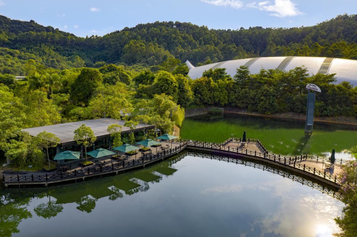百歲山生產(chǎn)基地坐落在羅浮山脈腳下,整個(gè)工廠與周圍的自然生態(tài)融為一體。進(jìn)入廠區(qū)后,整潔開闊的道路、郁郁蔥蔥的樹木、頗具藝術(shù)感的銀龜型廠房,都讓人不敢相信這里是一個(gè)工廠,簡直就是旅游景區(qū),也太美了吧!