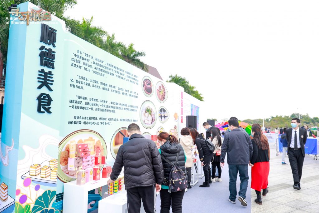 在文化和美食展區(qū),展示了香云紗、廣繡、龍舟、魚燈等非遺傳統(tǒng)文化工藝,以及順德酒廠、喜萬(wàn)年、欣得食品、雨潤(rùn)食品、榮華食品、鰻魚、倫教糕、雙皮奶等順德特色手信。