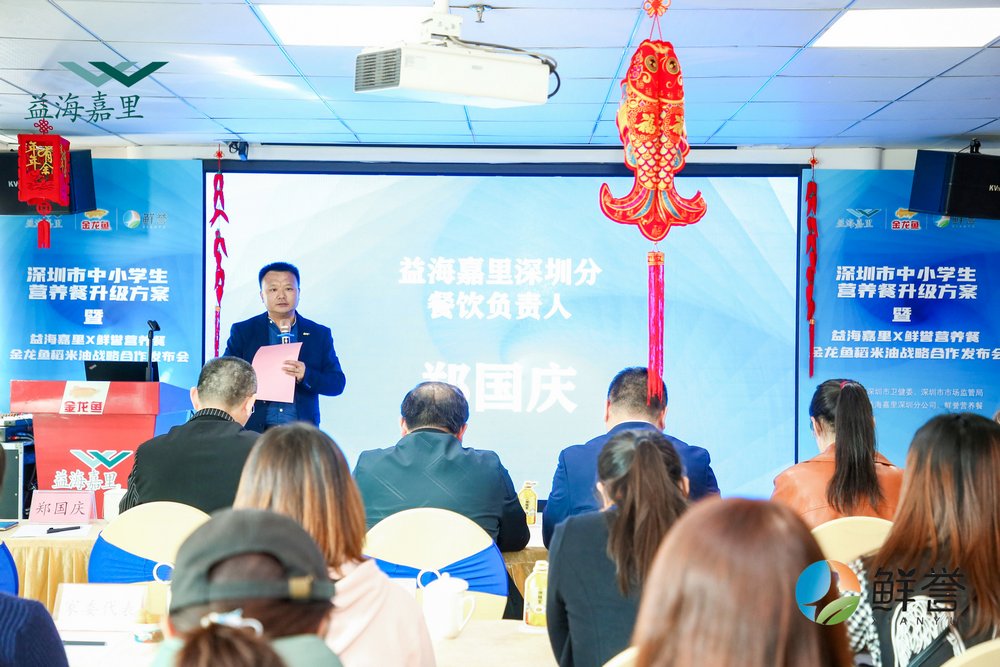 會議開場由益海嘉里深圳分餐飲負(fù)責(zé)人鄭國慶先生介紹益海嘉里的歷程并對鮮譽(yù)營養(yǎng)餐出品表示肯定,隨后鮮譽(yù)總經(jīng)理嚴(yán)資旺先生敘述了在營養(yǎng)餐升級過程中的努力,通過營養(yǎng)師和專業(yè)博士對營養(yǎng)餐數(shù)據(jù)和內(nèi)容的講述,讓在座的家委代表們更加了解了營養(yǎng)餐升級的必要性和可行性。益海嘉里稻米油項目的張波先生和朱若維女士以視頻的方式講述了金龍魚稻米油的來源以及榮譽(yù),目前金龍魚稻米油已經(jīng)在日本上市多年并作為中小學(xué)生指定用油長期使用。此外,發(fā)布會現(xiàn)場還舉行了益海嘉里與鮮譽(yù)戰(zhàn)略合作的授牌及剪彩儀式。