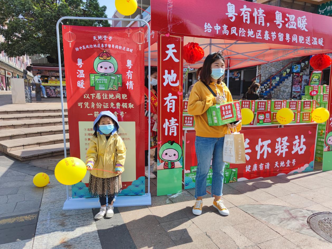 為讓留粵過(guò)年的同胞在“第二故鄉(xiāng)”廣東,也能夠感受到和在老家一樣的春節(jié)氛圍,今年,天地壹號(hào)舉辦“粵有情粵溫暖”公益活動(dòng),設(shè)立關(guān)懷驛站,旨在為留深過(guò)年市民送上了來(lái)自廣東企業(yè)的新年祝福。橫朗社區(qū)相關(guān)負(fù)責(zé)人介紹說(shuō),社區(qū)總?cè)丝?.2萬(wàn)多人,大部分人都積極響應(yīng)國(guó)家號(hào)召,選擇留下來(lái)就地過(guò)年。