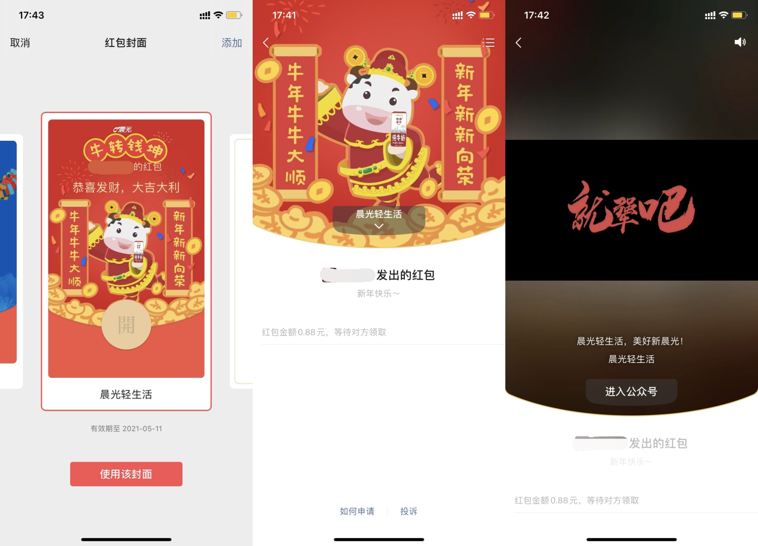 2021年的春節(jié)線上定制紅包封面成為網(wǎng)民熱議的話題,相較于往年的春節(jié)紅包,各具特色、風(fēng)格不一的紅包封面無疑是今年最明顯的特色了。晨光乳業(yè)也為此做出了嘗試,針對晨光牛奶用戶和粉絲大膽設(shè)計(jì),將憨態(tài)可掬的品牌IP放置在封面C位。無疑,這波寵粉操作有助晨光牛奶獲得更多粉絲的點(diǎn)贊,增強(qiáng)用戶粘度。