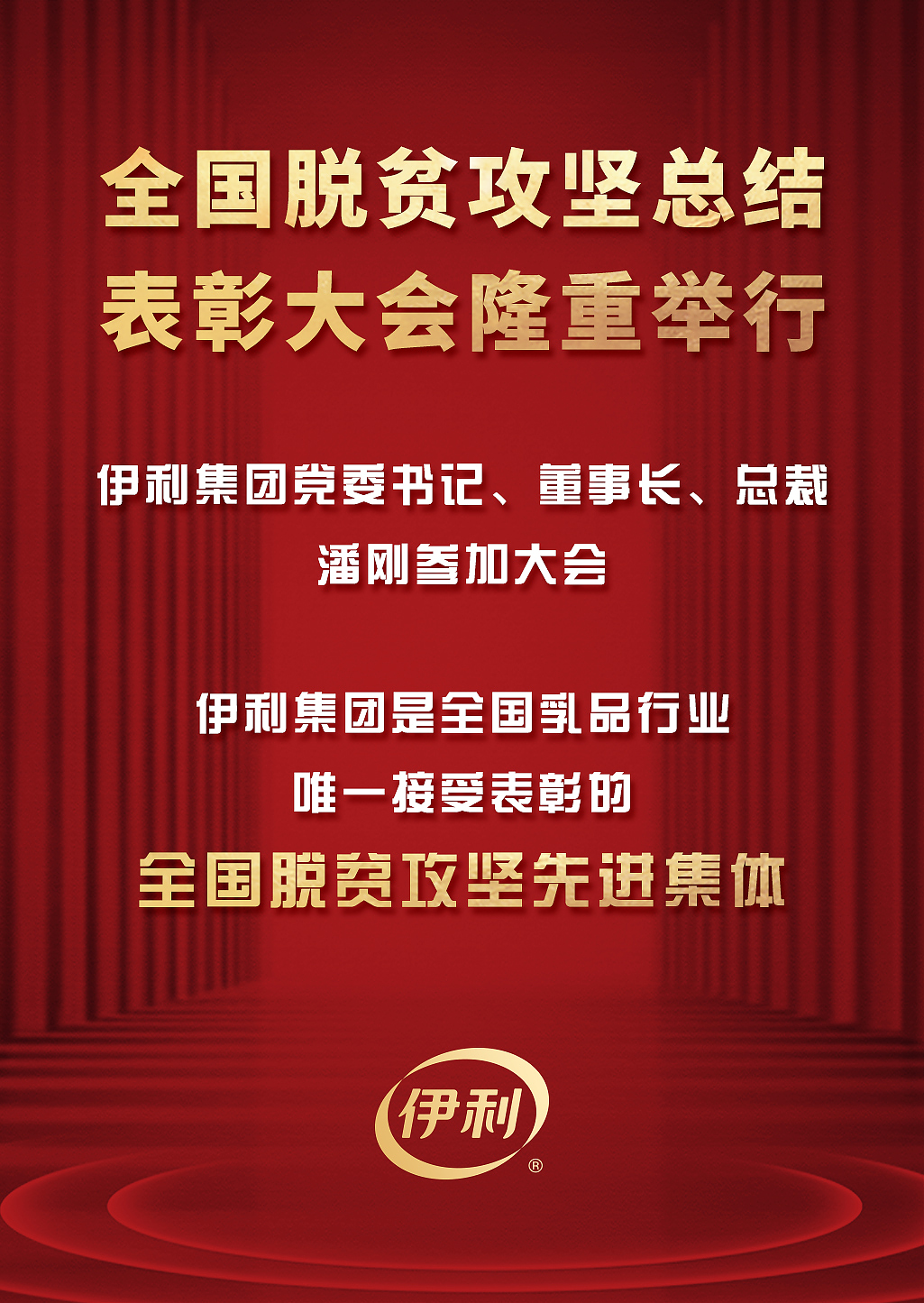 2月25日,全國脫貧攻堅總結表彰大會在北京隆重舉行。伊利集團是乳品行業(yè)全國脫貧攻堅先進集體唯一獲獎企業(yè)。