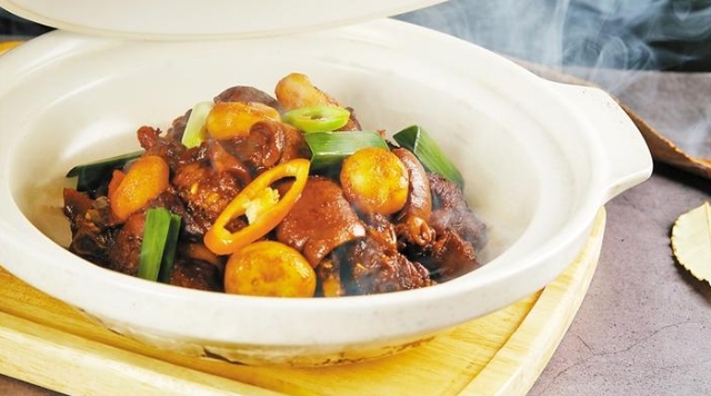 干燒黑山羊肉煲羊肉的口感細(xì)膩軟糯,不膻不膩,醇厚濃郁,羊肉特有的奶香在鼻腔里回蕩。
