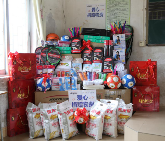 在捐贈儀式上,洋洋公益團隊為橫槎小學的師生們送上籃球、足球、羽毛球、作業(yè)本、鉛筆、橡皮檫、文具盒、打印機等文體用品和教學用具,以及大米、臘腸等生活物資。橫槎小學謝校長代表學校對愛心團隊一行表示感謝,并將錦旗和學生用心勾勒的美術作品回贈給碧桂園集團廣清區(qū)域、廣州日報大洋網等愛心代表。