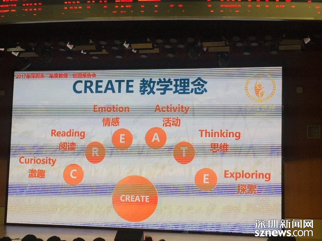 我有幸聽了一場(chǎng)深圳市年度教師的巡回演講,其中一個(gè)老師講到自己的幸福成長(zhǎng)過程時(shí),展示了自己獨(dú)有的特色教學(xué)理念——CREATE教學(xué)理念,如圖,她的所有課堂充現(xiàn)了激趣、閱讀、情感、活動(dòng)、思維和探索等六大環(huán)節(jié),彰顯特色,成就精英,當(dāng)你達(dá)到如此境界時(shí),幸福感和成就感就會(huì)水到渠成,雖然不求人人成精英,但愿人人有特色。