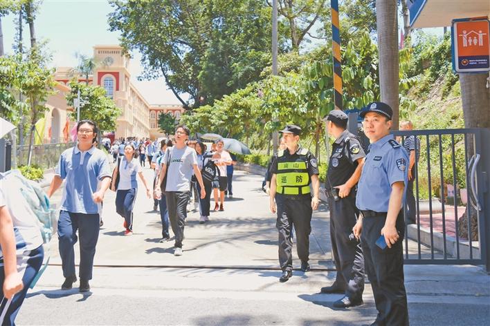 南山警方在轄區(qū)考點(diǎn)值守護(hù)考。