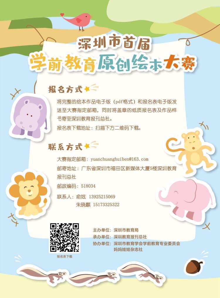 原創(chuàng)繪本大賽的參賽對象為全市幼兒園教師、在園幼兒及其家長,每所幼兒園的參賽作品數(shù)量沒有限制。有意參賽的選手可掃碼獲取報名表并了解詳細要求。作品征集時間為2022年1月10日-2月28日,3月為初評與終評階段,擬于3月底公布評審結果并舉行頒獎儀式。