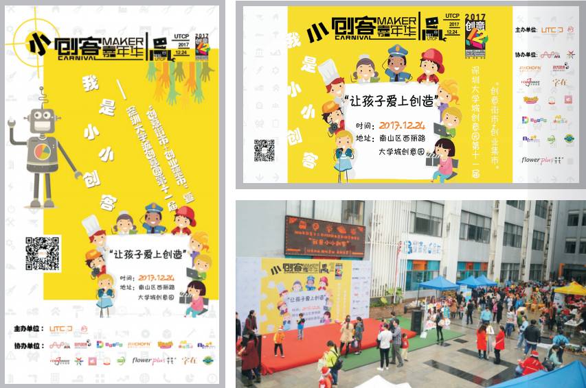 深圳大學(xué)城創(chuàng)意園主辦,活動以創(chuàng)意街市+創(chuàng)業(yè)集市的形式,展示、銷售孩子的創(chuàng)意產(chǎn)品,并結(jié)合專業(yè)創(chuàng)客實(shí)驗(yàn)室、3D打印、增強(qiáng)/虛擬現(xiàn)實(shí)、機(jī)器人等科技、技術(shù),讓孩子們在輕松投入的氛圍中體驗(yàn)最前沿的科技產(chǎn)品和創(chuàng)客項目?!皠?chuàng)新”、“實(shí)踐”、“分享”,活動旨在培養(yǎng)孩子們的動手創(chuàng)作能力、社會交往技能、團(tuán)隊協(xié)作、實(shí)踐技巧、集體榮譽(yù),拓展孩子們的創(chuàng)新創(chuàng)意思維,讓孩子愛上創(chuàng)造,逐步提升孩子的綜合能力,為將來更好地適應(yīng)社會的發(fā)展趨勢打好基礎(chǔ)。