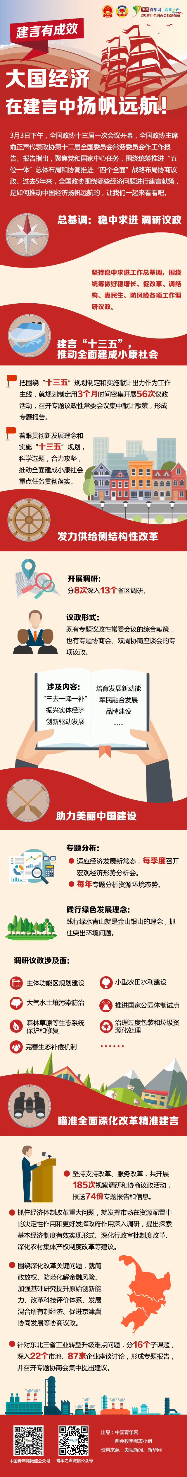 中國青年網(wǎng)北京3月4日電 3月3日下午,全國政協(xié)十三屆一次會議開幕,全國政協(xié)主席俞正聲代表政協(xié)第十二屆全國委員會常務委員會作工作報告。報告指出,聚焦黨和國家中心任務,圍繞統(tǒng)籌推進“五位一體”總體布局和協(xié)調推進“四個全面”戰(zhàn)略布局協(xié)商議政。過去5年來,全國政協(xié)圍繞哪些經(jīng)濟問題進行建言獻策,是如何推動中國經(jīng)濟揚帆遠航的,讓我們一起來看看吧。