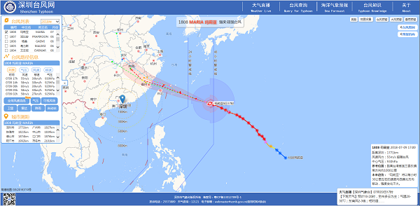深圳臺(tái)風(fēng)網(wǎng)顯示的第8號(hào)臺(tái)風(fēng)“瑪莉亞”移動(dòng)軌跡